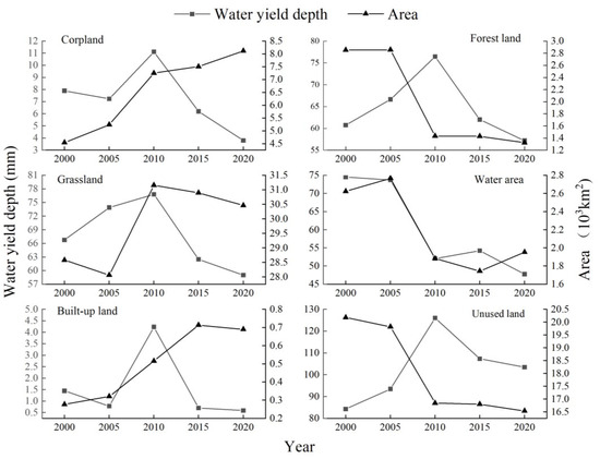 Water yield of different land uses from 2000 to 2020.