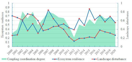 “Response” includes measures taken by humans to address the deterioration of habitat quality and the ability of the ecosystem to restore its own vitality and stability when disturbed by “pressure” [41]. Ecosystem resilience is used to characterize the “response” level of the ecosystem. The expansion of forestland area and investment in environmental protection represent the response of society to environmental degradation.