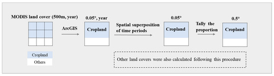 Steps for processing raw land-use data into 0.05° and 0.5° grids.
