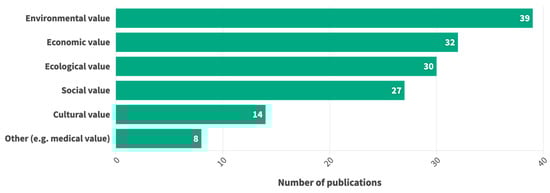 Different mangrove-ecotourism-related values and the number of publications mentioning each value category.