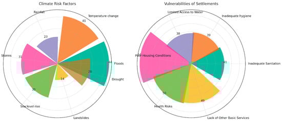 Radial bar chart of climate risk factors and vulnerabilities of settlements in the reviewed sources.