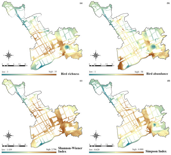 - Liu, Z.; Zhou, Y.; Yang, H.; Liu, Z. Urban green infrastructure affects bird biodiversity in the coastal megalopolis region of Shenzhen city. Appl. Geogr. 2023, 151, 102860. [Google Scholar] [CrossRef]