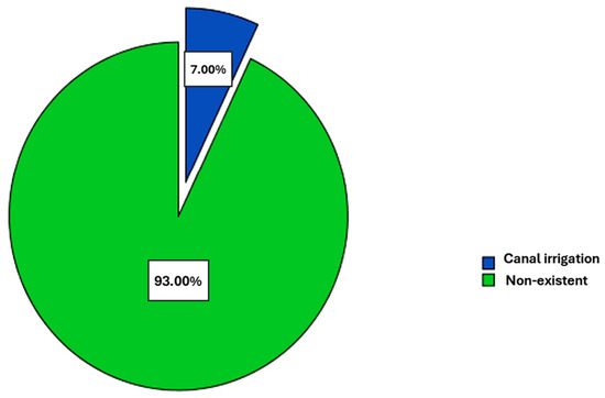 Crop water requirements are not met through rainfall, as evidenced by eighty-nine percent (89%) of the respondents. However, only 7% (Figure 13) of the respondents have an existing irrigation infrastructure (in the form of canal irrigation and rainwater harvesting) to supplement their crop water requirements and to respond to episodes of drought, especially at the beginning of the planting seasons. It can be inferred that irrigation practices are not much rooted in farmers’ cultivation habits in the municipality of Dschang.