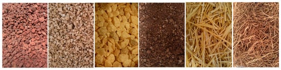 Under this idea in mind, the first step to construct a technosol should be to prepare a mixture of materials (some examples in Figure 3), following the basic proportion presented in Figure 2. It seems necessary to have inorganic materials as the mineral matter of the soils (45%), organic materials to form the “soil organic matter” (5%) and lead a porous space close to the 50% of the total volume, to be occupied by air and water, in a proportion that will depend on environmental conditions and soil management. This part is the soil porosity which is needed for the movement, exchange and availability of water and air for plants. The behavior and quality of soils depend on an interconnected and adjustment between physical, chemical, and biological aspects [32], and this should be considered for making a technosol.