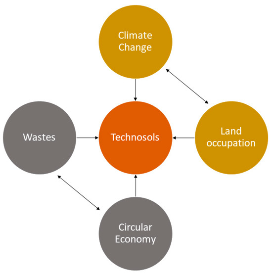 Technosols should be considered by policy makers and are having a crucial role in the European Green Deal [39]. Inside the Zero Waste Masterplan for cities, soils and technosols should be included inside the strategies to achieve the targets of the circular economy. However, they are not included, as it can be seen [42], and this is a mismanagement. Climate Change and land use are closely connected as well as the zero-waste strategy and circular economy. They can also be linked to the beneficial practice of creating technosols when natural soils are degraded and disappeared.