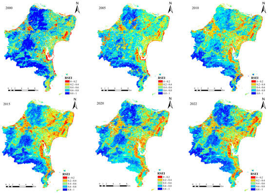 54. Geng, J.; Yu, K.; Xie, Z.; Zhao, G.; Ai, J.; Yang, L.; Yang, H.; Liu, J. Analysis of spatiotemporal variation and drivers of ecological quality in Fuzhou based on RSEI. Remote Sens. 2022, 14, 4900. [Google Scholar] [CrossRef]