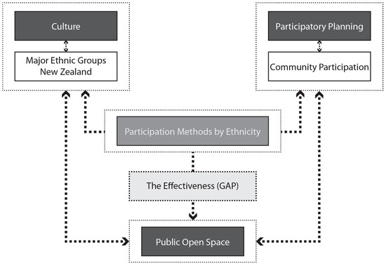 On the path to dealing with such issues and difficulties with community participation, there exists a notable gap in understanding the effectiveness of community participation processes among the major ethnic groups in Aotearoa New Zealand. In this context, the most effective participatory planning processes should be explored and discovered not only to better recognise and resolve these cultural differences and conflicts but also to “provide creative ways for interaction and negotiation of competing visions, interests, values, and identities” [6] (p. 312). While community engagement initiatives are essential for promoting inclusivity and empowering diverse communities, there is limited empirical evidence on how these processes operate within specific cultural contexts and whether they adequately address the needs and preferences of different ethnic groups. By addressing this knowledge gap, this research explores evidence-based strategies for enhancing the inclusivity, equity, and efficacy of community engagement initiatives across diverse cultural landscapes, thereby fostering a more effective, cohesive, and resilient society in Aotearoa New Zealand (Figure 1).