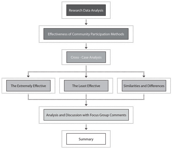 The general procedure of the analysis is shown below (Figure 2). The cross-case analysis and discussions were focused on targeting ethnic groups separately, including New Zealand European, Māori, Chinese, and Pasifika, in terms of the comments and feedback provided by the participants. The experience and effectiveness of the community participation process were examined, and the reasons for selecting each of the focused ethnic groups were analysed and discussed. Moreover, cultural background and influence, two of the most critical concepts in this research, were analysed and discussed in conjunction with the highly effective participation methods selected by the targeting ethnic groups.