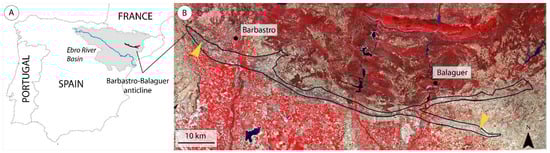 - Barnolas, A. (Director) Memoria del Mapa Geológico de España, Escala 1:50000. Hoja 287, Barbastro; Instituto Geológico y Minero de España: Madrid, Spain, 2014; p. 40. [Google Scholar]