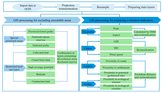 - Sun, L.; Jiang, Y.; Guo, Q.; Ji, L.; Xie, Y.; Qiao, Q.; Huang, G.; Xiao, K. A GIS-based multi-criteria decision making method for the potential assessment and suitable sites selection of PV and CSP plants. Resour. Conserv. Recycl. 2021, 168, 105306. [Google Scholar] [CrossRef]
