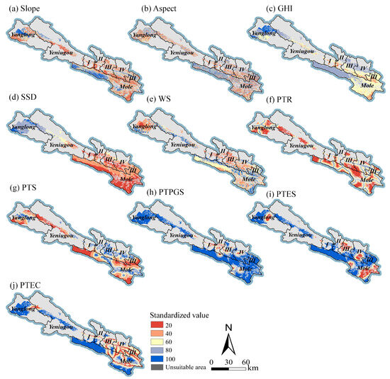 - Zhou, J.; Ding, Q.; Zou, Z.; Deng, J.; Xu, C.; Yang, W. Land suitability evaluation of large-scale photovoltaic plants using structural equation models. Resour. Conserv. Recycl. 2023, 198, 107179. [Google Scholar] [CrossRef]