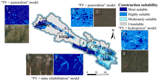 - PV + mine rehabilitation model in coal mining subsidence areas of Yanglong, Mole, and Yeniugou.