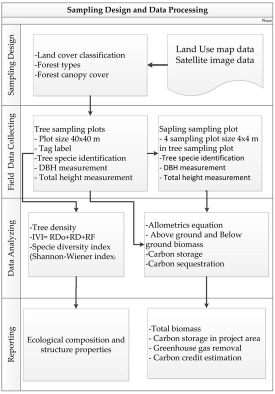 The methodology employed for assessing plant diversity, biomass quantity, and carbon storage in this study is outlined (Figure 2) as follows: