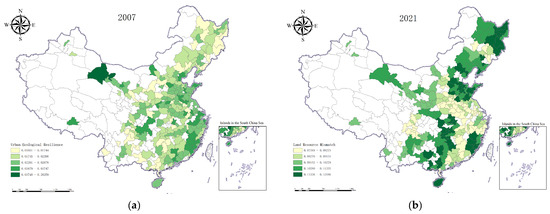 Spatial distribution of UER in China. (a) Spatial distribution of UER in China in 2007; (b) Spatial distribution of UER in China in 2007.