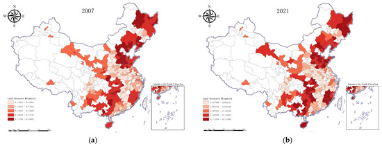 Spatial distribution of LRM in China. (a) Spatial distribution of LRM in China in 2007; (b) Spatial distribution of LRM in China in 2007.