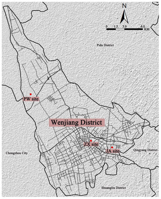 All the experimental sites used in this study were located in Wenjiang, Chengdu, Sichuan Province, China. Chengdu, the capital of Sichuan Province, lies in southwest China. It is situated between 102°54′~104°53′ east longitude and 30°05′~31°26′ north latitude. Chengdu is where the notion of “Park City” was initially presented. The United Nations Development Program highly complimented Chengdu’s park city construction in the ‘National Human Development Report Special Edition’ released in 2019 [63]. According to the official website of the Chengdu Municipal People’s Government, until now, Chengdu has built more than 1500 parks of various types, and the cumulative construction mileage of the “Tianfu Greenway” project has exceeded 7000 km, initially forming a unique urban pattern that integrates natural boundaries and urban planning [64].