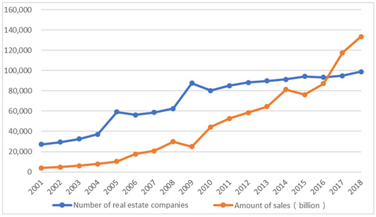 Number of real estate companies and amount of sales (Source: China Bureau of Statistics).