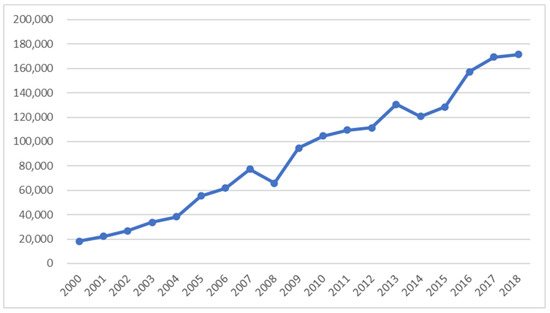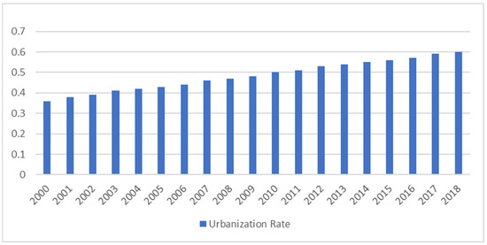 China’s 2000–2018 urbanization rate (Source: China Bureau of Statistics).
