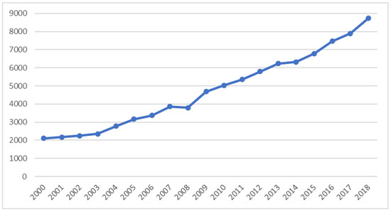 Average real estate prices in China, 2000–2018 (RMB/m2) (Source: China Bureau of Statistics).