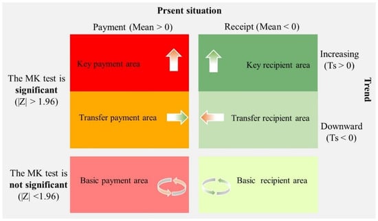 In this study, the type of carbon compensation in each county was zoned according to the present situation and trend of carbon compensation costs. Specifically, the present situation was judged by the average compensation costs of the past three years, and trend analysis was achieved by combining the Theil–Sen (TS) median index and Mann–Kendall (MK) test methods.