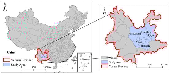 - Zhang, Z.; Wang, B.; Buyantuev, A.; He, X.; Gao, W.; Wang, Y.; Dawazhaxi; Yang, Z. Urban agglomeration of Kunming and Yuxi cities in Yunnan, China: The relative importance of government policy drivers and environmental constraints. Landsc. Ecol. 2019, 34, 663–679. [Google Scholar] [CrossRef]