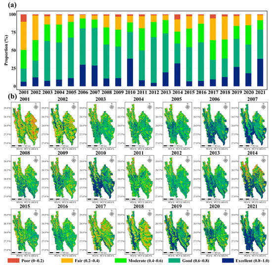 3.2. Ecological Quality Changes in the Diqing Prefecture