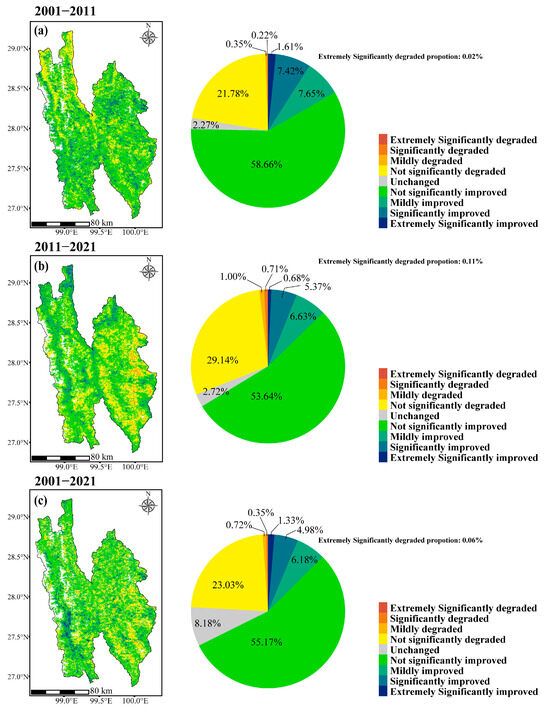 4.1. Trends in the RSEI Changes in the Diqing Prefecture