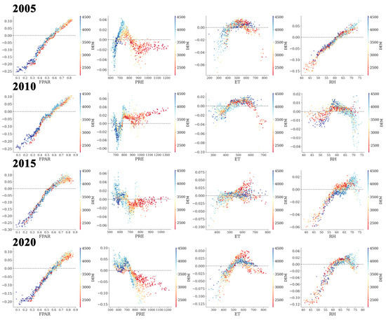 4.2. Changes in the Drivers of RSEI in the Diqing Prefecture