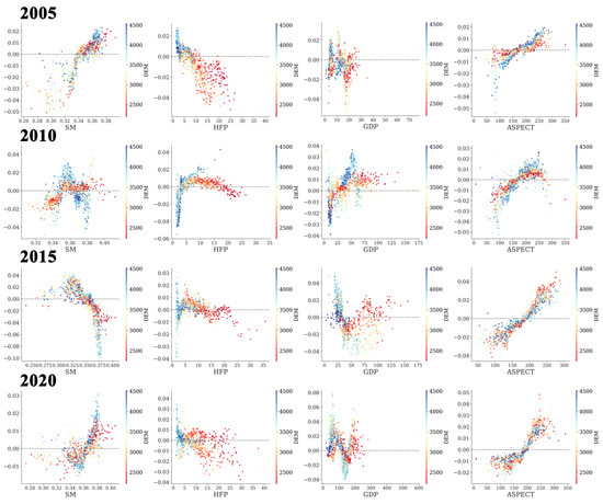 4.3. Interaction Effects of RSEI Drivers in the Diqing Prefecture
