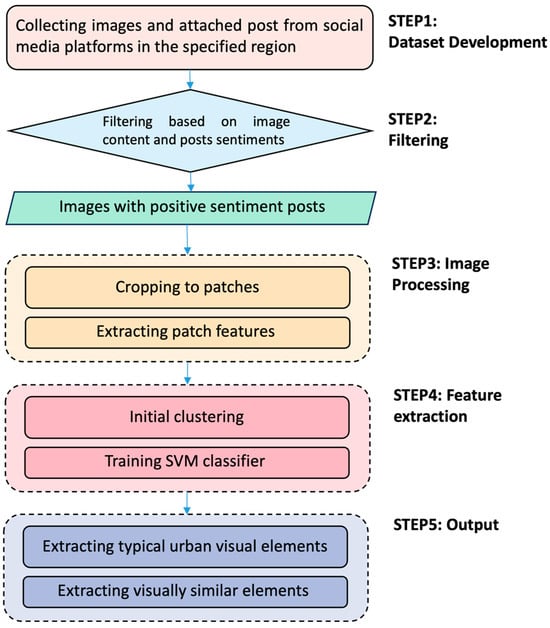 Beyond functionality and location, the aesthetic of public spaces is equally important. Various elements can trigger a range of feelings in individuals. This section seeks to identify the visual elements of public spaces that elicit the most positive emotional responses by analyzing images from social media platforms. Figure 5 demonstrates the process of extracting preferred visual elements.