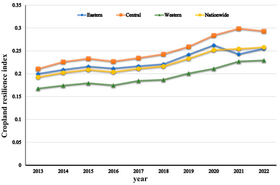 Temporal–Spatial Dynamics and Collaborative Effects of Cropland Resilience in China