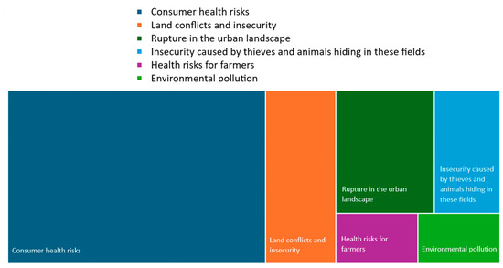 In light of all this information, it would be good to know how the various experts in Greater Lomé perceive the practice of UA, which, although it does not appear to be officially authorized or encouraged, is nevertheless widespread and visible in many urban areas. In general, urban land cultivation is attracting growing interest due to its potential to meet local food needs, promote environmental sustainability, and strengthen the resilience of urban communities [16]. However, the practice also raises questions about food security, public health, and urban planning [17]. Experts’ analysis can help inform policymakers on how to appropriately regulate and support UA to maximize its benefits while minimizing its adverse effects on public health and the environment [18]. The problem is that UA faces a notable gap between the problems perceived by experts and the actual challenges that urban farmers face [14]. This gap manifests in general challenges and specific issues related to farmers’ health such as rabies, malaria, sore eyes, stomach aches or diarrhea, and fragile health in general.