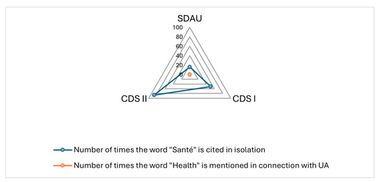 The three urban planning documents collected for Greater Lomé were analyzed with Python 3.12 to deduce the word counts related to agriculture and health.