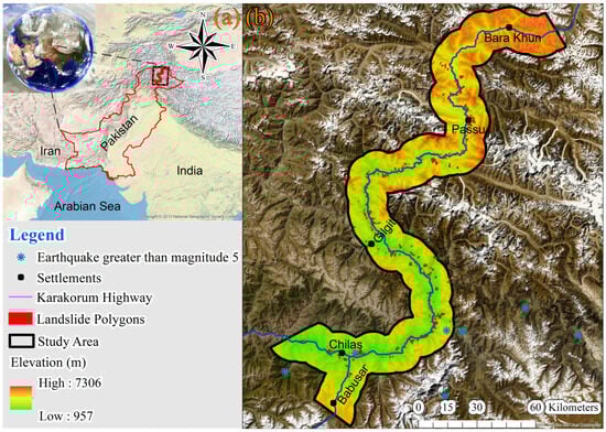 - Kulsoom, I.; Hua, W.; Hussain, S.; Chen, Q.; Khan, G.; Shihao, D. SBAS-InSAR based validated landslide susceptibility mapping along the Karakoram Highway: A case study of Gilgit-Baltistan, Pakistan. Sci. Rep. 2023, 13, 3344. [Google Scholar] [CrossRef]