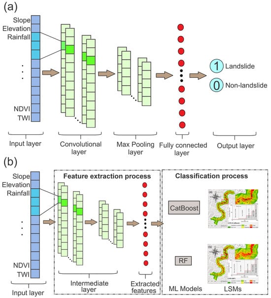 - Fang, Z.; Wang, Y.; Peng, L.; Hong, H. Integration of Convolutional Neural Network and Conventional Machine Learning Classifiers for Landslide Susceptibility Mapping. Comput. Geosci. 2020, 139, 104470. [Google Scholar] [CrossRef]
