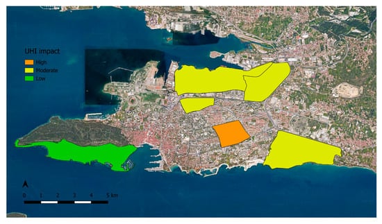 Furthermore, in future estimates, the Mediterranean region is regarded as one of the most prominent “hotspots” of climate change, according to []. Given that summers are hot and UHIs are most noticeable during this time, studies should be adjusted to the Mediterranean climate using data from the summer months.