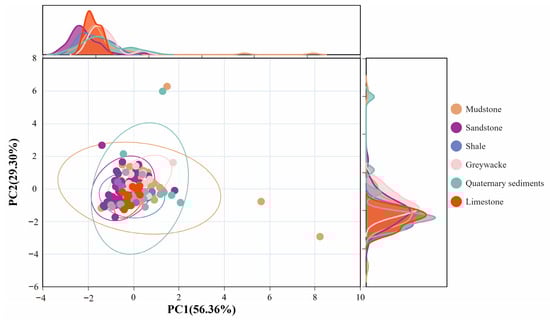 Principal component analysis (PCA) of different types of bedrock soils (mudstone, marl, greywacke, shale, sandstone, Quaternary sediments, and limestone).