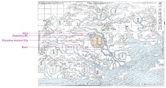 Chaozhou WL and ancient Chaozhou City (source: ancient map of Chaozhou City is sourced from Chaozhou prefectural chronicle, and the rest are self-drawn by the author).