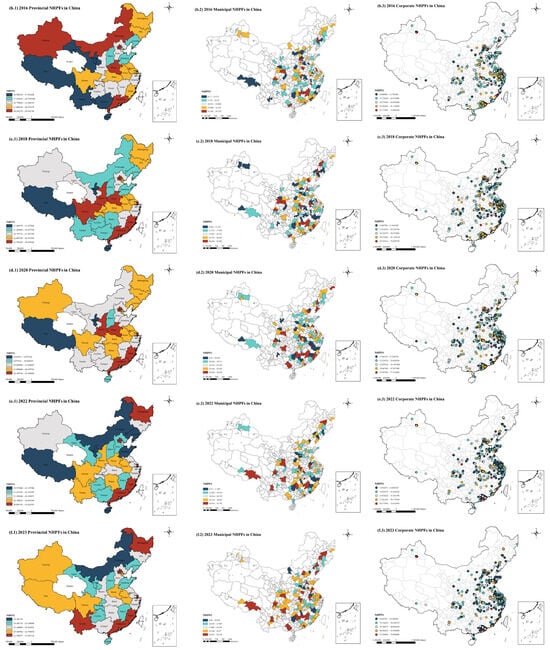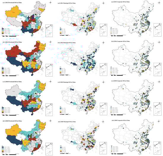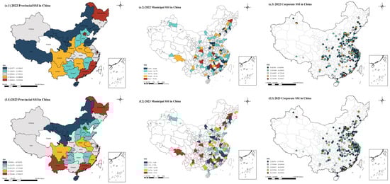 Firstly, this study explored the spatial and temporal evolution of NHPFs and SSI in China from 2014 to 2023. The graphs reveal a consistent improvement in both indices at the provincial, municipal, and corporate levels, particularly in the eastern and central regions, while the western and northeastern regions exhibit greater volatility. These results show pronounced spatial autocorrelation and indicate the presence of spatial inequalities across regions.