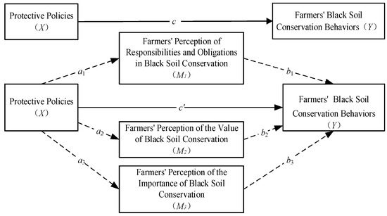 Farmers’ cognition of responsibilities and obligations, value, and importance regarding black soil conservation have a mediating effect on the influence of protective policies on farmers’ black soil conservation behaviors.