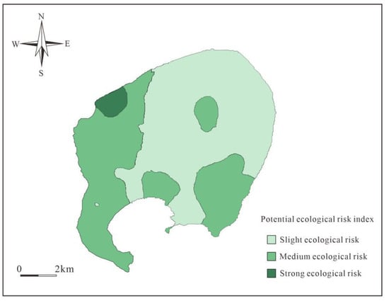 Soil quality assessment map of the studied area based on the potential ecological risk index.