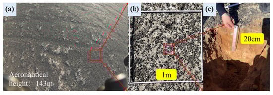 The Eastern Junggar Coalfield in Xinjiang, China, is situated within a vast expanse of the Gobi Desert, where a distinctive gravel layer, known as the “gravel layer”, extensively covers the surface. This gravel layer, typically 1–5 cm thick, plays a fundamental role in the Gobi ecosystem. It serves as a protective shield, reducing the vulnerability of the underlying soil to wind erosion by increasing surface roughness and dissipating wind energy. The gravel layer also acts as a physical barrier, preventing fine soil particles from being removed by strong winds []. In arid regions like the Eastern Junggar Coalfield, where vegetation cover is sparse and wind speeds are often high [,], the preservation of the gravel layer is crucial for preventing desertification and maintaining soil stability. Thus, protecting the gravel layer is a key strategy for effective wind erosion control and the preservation of fragile desert ecosystems.
