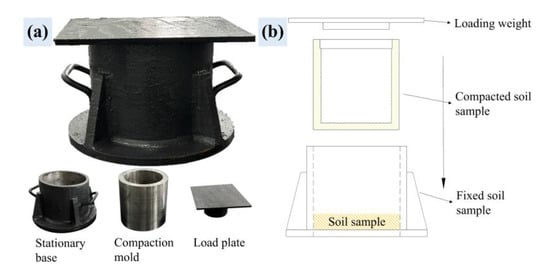 Homemade compaction device. (a) Actual image. (b) Schematic diagram.