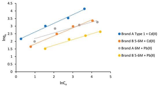 Freundlich | KF, mg/g*(L/mg)1/n | 7.71 | 7.14 | 3.67 | 2.54 |