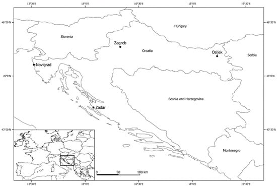 In this study, four shooting ranges/sites that are only used for the Olympic disciplines of trap and/or skeet were examined: Zagreb (ZG), Osijek (OS), Zadar (ZD) and Novigrad (NG) (Figure 1).