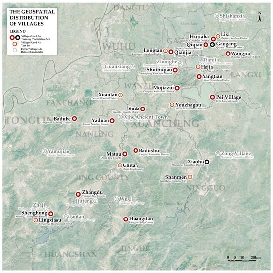 - Li, M.; Rui, Y.; Wang, C.X. Spatial Distribution and Influencing Factors of Traditional Villages: A Case Study of the Wuyue Cultural Region. Resour. Environ. Yangtze Basin 2018, 27, 1693–1702. Available online: https://yangtzebasin.whlib.ac.cn/CN/Y2018/V27/I08/1693 (accessed on 30 August 2025). (In Chinese).