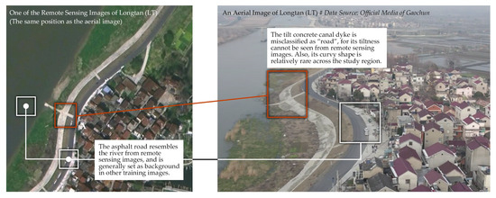 The study area exhibits remarkable rural settlement diversity, with villages distributed across three primary geomorphic types, mostly polder villages, river-side villages, and plain villages. Polder villages cluster within dyke-enclosed areas, adapting to irregular reclaimed land boundaries, resulting in winding, narrow alleys and road networks that follow topographic gradients; river-side villages align along watercourses featuring linear road networks and frequent intersections with canals, posing challenges for segmentation due to spectral similarity between water and road surfaces; plain villages are located on flat alluvial plains with more regular layouts and mixed land uses (residential, agricultural, and public spaces) that complicate feature discrimination.