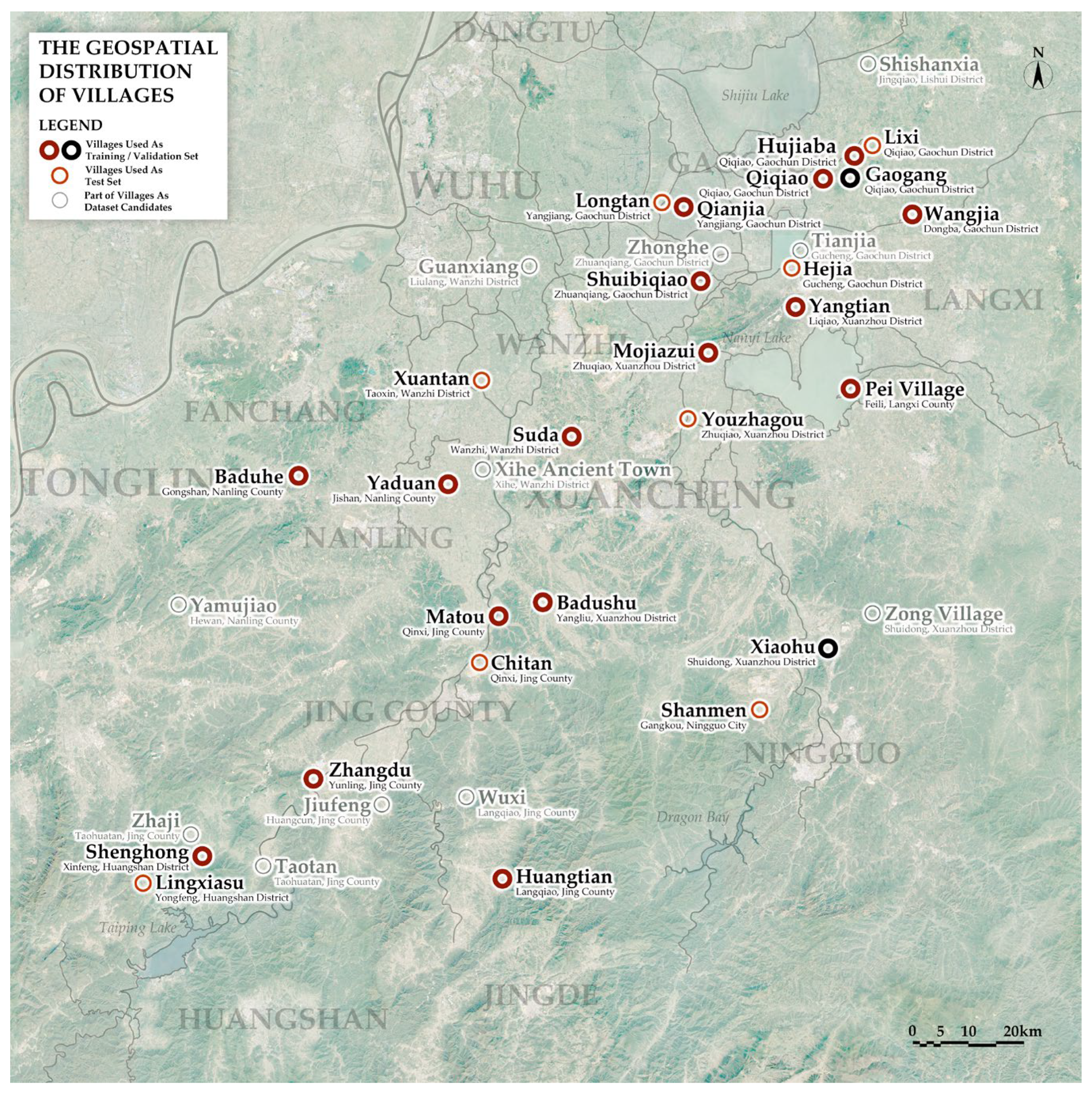 | Xiaohu Village | XH | Shuidong Town, Xuanzhou District, Xuancheng, Anhui Province | Plain, Hill-side | Fourth Batch of Chinese Traditional Village | - | 5.32 |