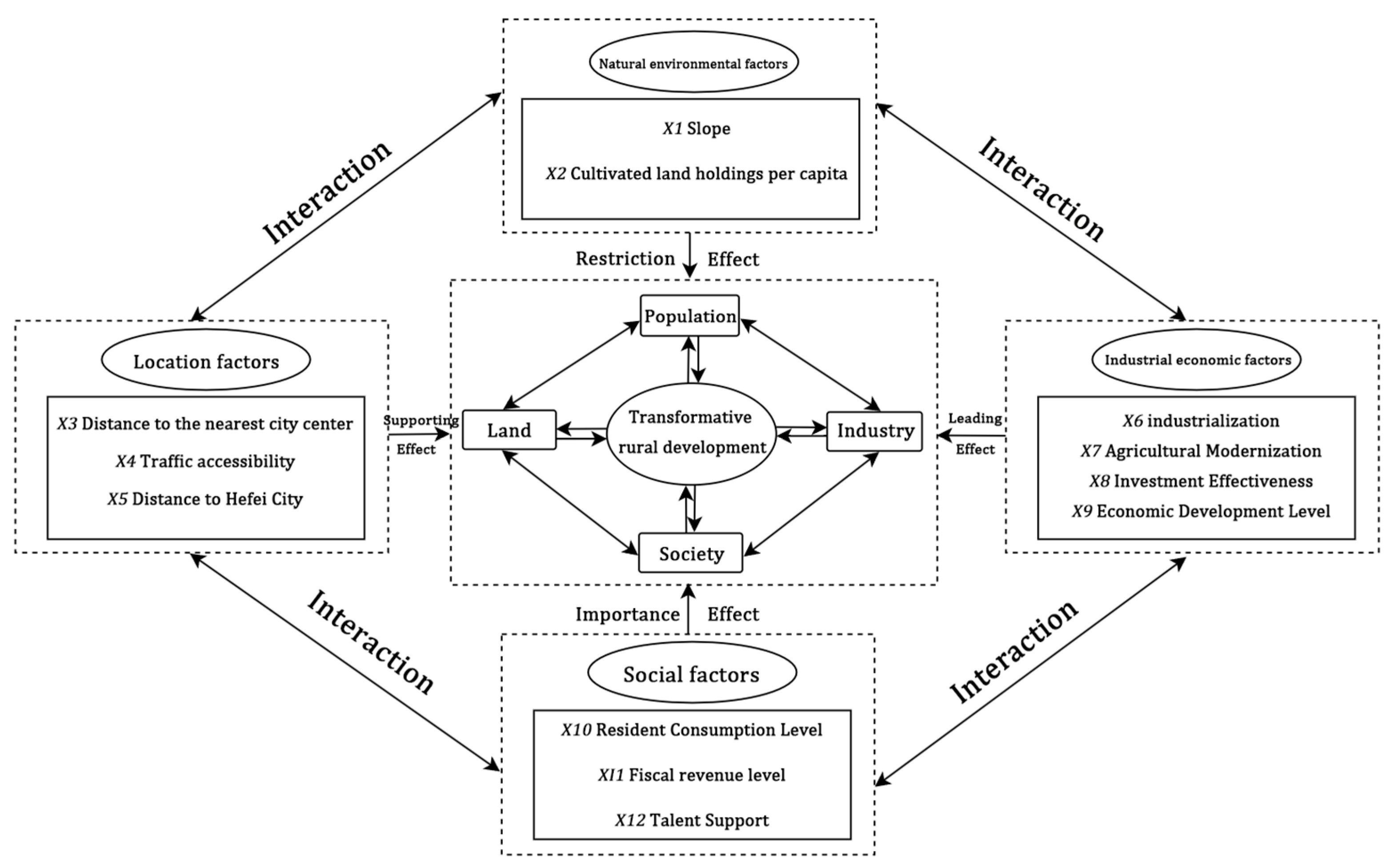 - Wu, K.S.; Kong, D.Y.; Wang, Y.; Yang, X.J. Spatial Differentiation of Influencing Factors and Their Role Effects of Rural Transformation and Development: Taking Shanxi Province as an Example. J. Nat. Resour. 2022, 37, 2033–2050. [Google Scholar]