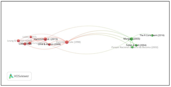 Co-citation analysis was conducted to identify the clusters which represent the coherent intellectual foundation of the research on soil erosion in protected areas. A total of 11 articles co-cited at least four times were grouped into two clusters (Figure 5).